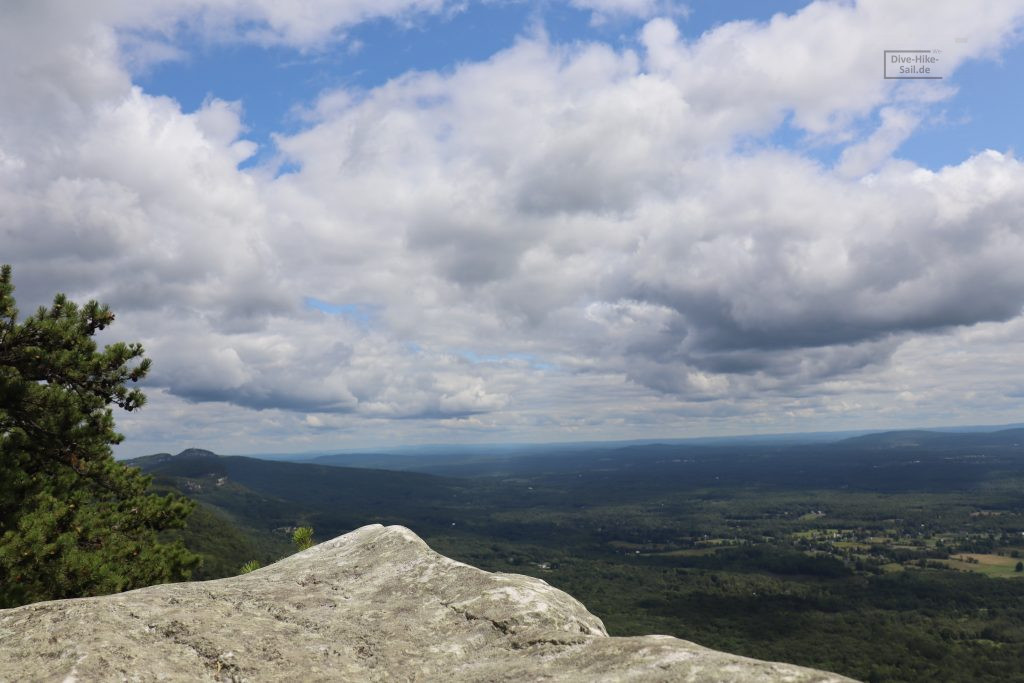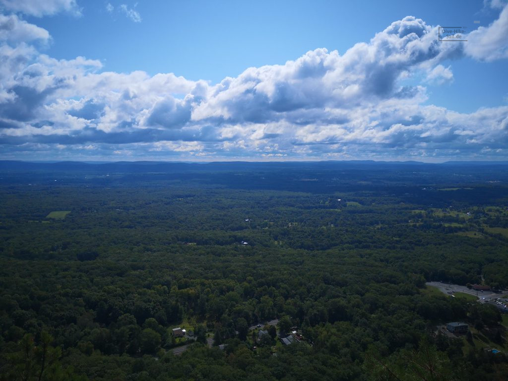 Seit dem ist aber nun mal einiges passiert. Zwei Wochen nachdem ich in meiner neuen Familie angekommen bin ging es in den Urlaub. „Glamping“ im Yogi Bear Park Upstate. Und da merkte ich dann, was für eine Auswahl an Landschaften allein der Staat New York hat. Von der Stadt an sich mal abgesehen, hatte ich bis dahin ja nur Long Island erlebt. Welches überraschend hügelig ist, aber hauptsächlich durch große Villen und lange Strände strahlt. Doch plötzlich war ich in den Bergen. Naja, keine richtigen Felsigen Berge, aber doch Berge mit berühmten Kletter-Klippen. Die Chance mir die Berge näher anzusehen konnte ich mir also nicht entgehen lassen. Also habe ich mich entschlossen 10 km zu wandern. Alleine, in einem Land in dem ich noch nie war, mit einer gezeichneten Wanderkarte ohne Höhenprofil. Und so kam es also, das mein Wanderweg, am Rand der Klippe entlang führte.