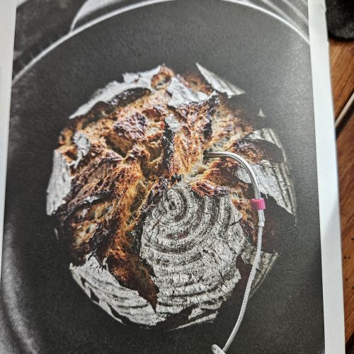 - Etwa 45-60 Minuten backen, dann einen Temperaturfühler in den Teig stecken, bis 90 Grad erreicht werden. Für die letzten Minuten den des Dutch Oven abnehmen, damit der Dampf entweichen und Kruste knusprig werden kann.