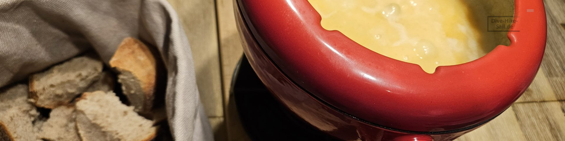 - Den Brenner im Rechaud anzünden. Caquelon mit dem Käsefondue daraufsetzen und sofort servieren.