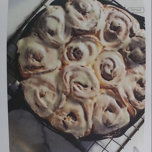 • Zimtschnecken in der Form auf der Oberseite mit dem Zuckerguss bestreichen und 10 Munten ruhen lassen.